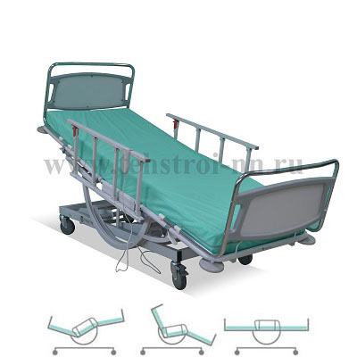Трехсекционная функциональная кровать предназначена для кардиологических, неврологических, ортопедических отделений, а также для палат интенсивной терапии. Оснащена 2-мя сервоприводами.